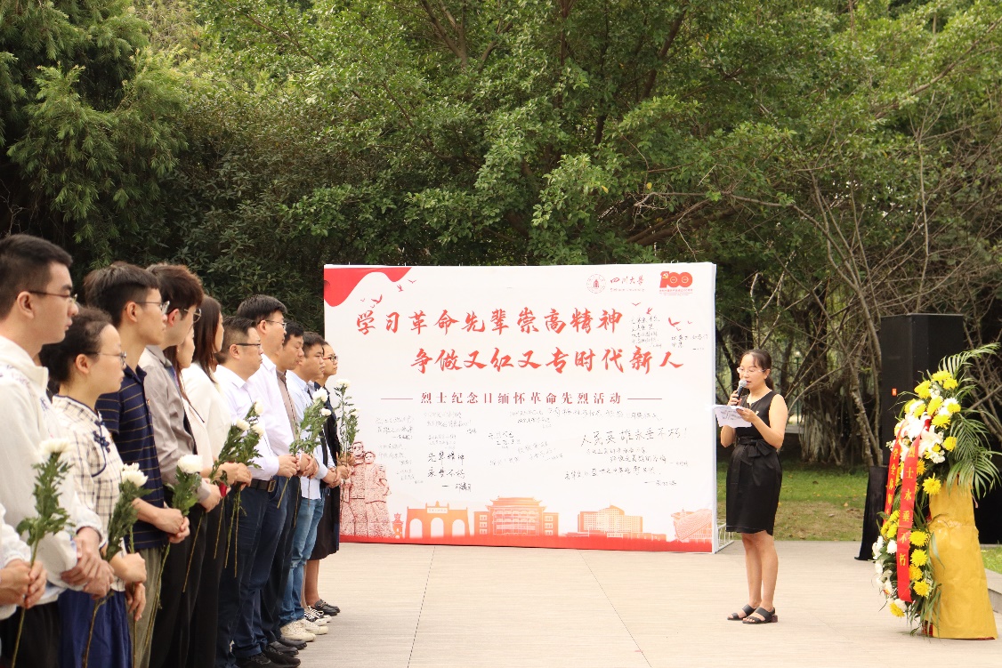 9月30日上午,烈士纪念日缅怀革命先烈活动在四川大学英烈碑广场举行。校党委副书记郭勇,宣传部、学工部、研工部、校团委、档案馆等部门的代表,学校“江姐班”及学院师生代表参加了本次活动。