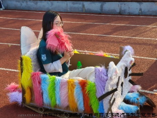 本届科技节特设“纸箱车挑战赛”环节,高中生团队以纸板、胶水等简易材料打造人力驱动车辆,并创意融入趣味互动环节:参赛车辆需由学生推行,班主任作为“乘客”乘坐在纸板车上,既考验车辆承重与稳定性,又增添师生协作的欢乐氛围。深圳技术大学赛车工作室成员担任赛事评委,结合巴哈大赛等赛事经验,从结构强度、承重分配等维度为作品提供优化建议,并分享工程创新理念。活动尾声,深技大E7巴哈赛车亮相展区,其专业级轻量化车身与高性能驱动系统引发学生围观,直观呈现了“创意落地”的工程化路径。