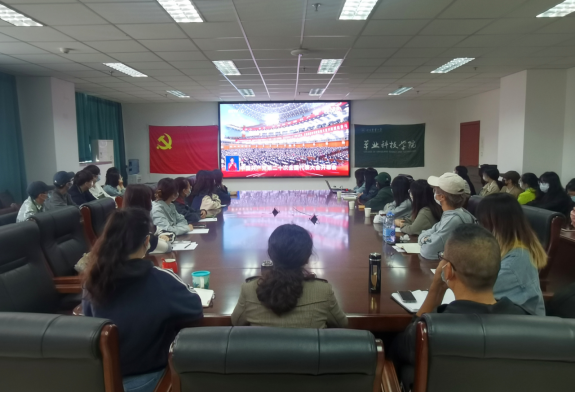 学院组织师生在7教307室集中收看党的二十大开幕直播