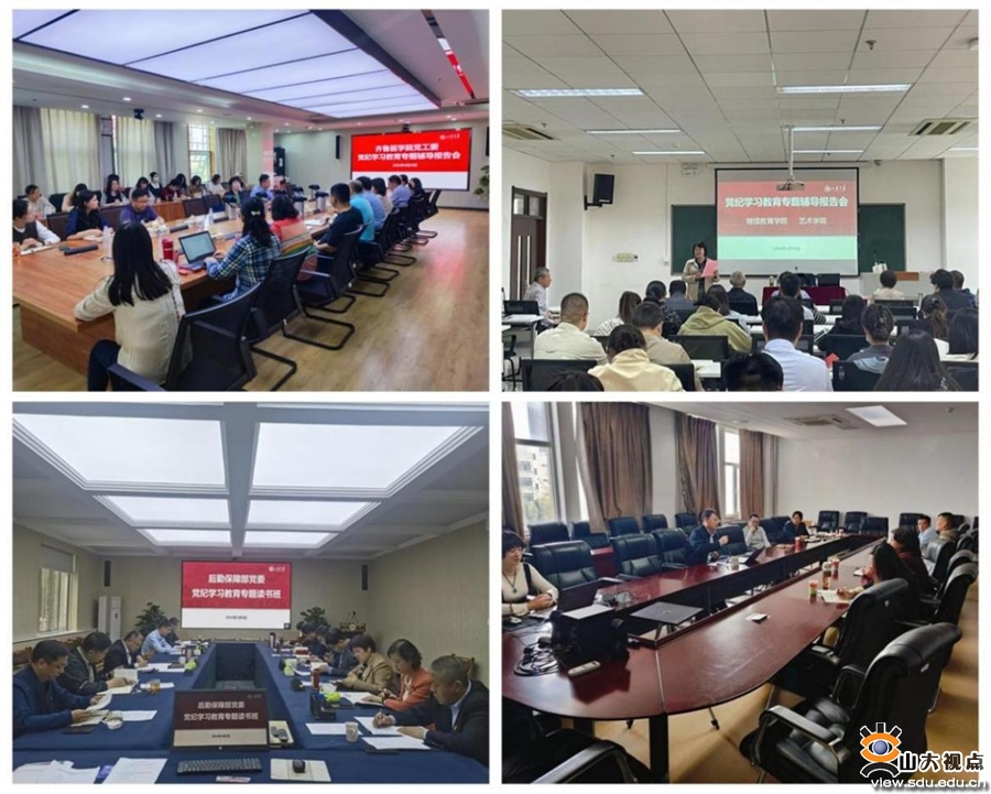 齐鲁医学院党工委、艺术学院党委、空间科学与物理学院党委、后勤保障部党委、继续教育学院党委等,通过召开专题辅导报告会、举办理论学习中心组学习、专题读书班等形式,准确掌握《条例》的主旨要义和规定要求,增强纪律意识、提高党性修养。管理学院党委、齐鲁交通学院党委与企业开展党纪学习联学共建活动,聚焦学党纪主线,推动党建与校企合作、人才培养等工作的深度融合。马克思主义学院党委、网络空间安全学院(研究院)党委、离退休党委等就近就便用好廉洁文化阵地,加强正面教育,推动党员、干部把他律要求内化为自觉行动。机关党委开展青年理论学习小组“初心堂”之“清风相伴 奋楫扬帆”党纪学习教育主题活动,组织机关青年干部原原本本学《条例》,观看警示教育专题片,以案明纪、以案释纪、以案促学。
