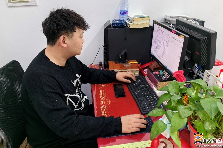 中心校区学生公寓管理部楼长谢宏顺安排好楼内的值班员、保洁员工作后,及时回到办公室整理留校学生数据进行报送。