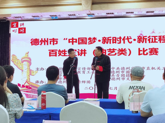 为迎接党的二十大胜利召开,集中展现全市人民在踏上实现第二个百年奋斗目标新征程上的新作为、新担当、新姿态,7月27日-28日,由中共市委宣传部等单位主办,德州市委讲师团承办的“中国梦·新时代·新征程”宣讲比赛举行。学生处党支部推选党员靳长钊同志参赛,荣获曲艺类比赛一等奖。