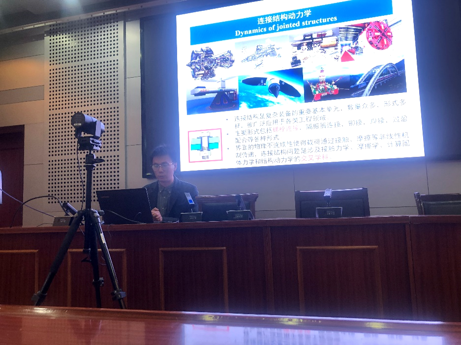 会上,力学系教师周康博士作“弹性颗粒分散体系渗流特征及模拟方法研究”学术报告,向与会师生介绍了多孔介质中弹性颗粒分散体系的非连续相渗流特征及相应的微观/宏观尺度模拟方法。力学系教师李一堃博士作“连接结构非线性力学响应与本构模型研究”学术报告,他主要介绍了连接结构静、动力学实验现象,连接接触对组合结构动力学响应的影响,以及连接结构本构模型及其在数值模拟中的应用。