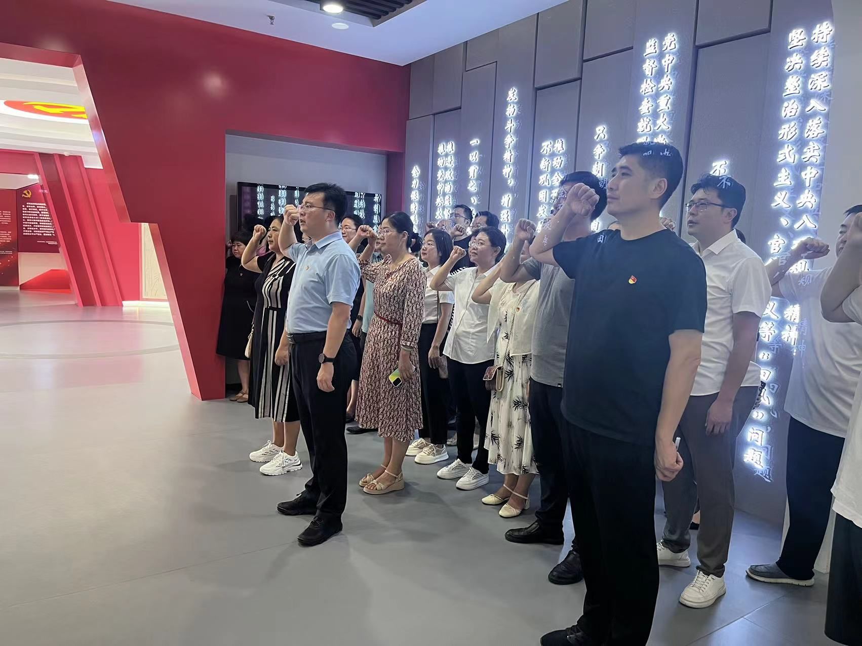 全体党员在讲解员的带领下,依次参观了“政之清、廉之洁、罪之深、谋之要”四个主题展厅,共同观看了廉政教育片。一幕幕镜头、一声声忏悔、一句句告诫深刻揭示了“廉贪一念间,荣辱两世界”的惨痛教训,引导党员干部真正把纪律规矩转化为政治自觉、思想自觉、行动自觉。在宣誓厅,支部书记柳见亮带领全体党员举起右拳重温入党誓词,牢记党员的初心和使命,永葆清正廉洁的政治本色。