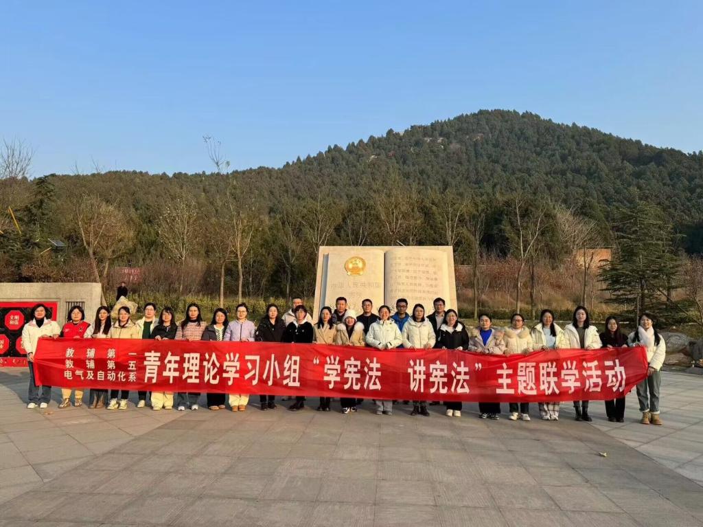 活动中,青年理论学习小组成员在“宪法墙”前集体诵读宪法序言及正文中的部分章节、条款,用心体会宪法的庄严与神圣。电气及自动化系党总支书记赵秋叶在《宪法典》铜册前为全体成员讲解宪法知识,希望青年同志们都能懂法、普法、守法,做一名合格的公民。