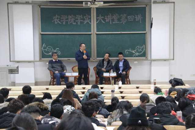 12月19日下午,农学院于综合楼N204举办第四期学实大讲堂,特邀农学院副院长王东教授及其团队主讲,辅导员程璐主持,18级全体学生到场学习。