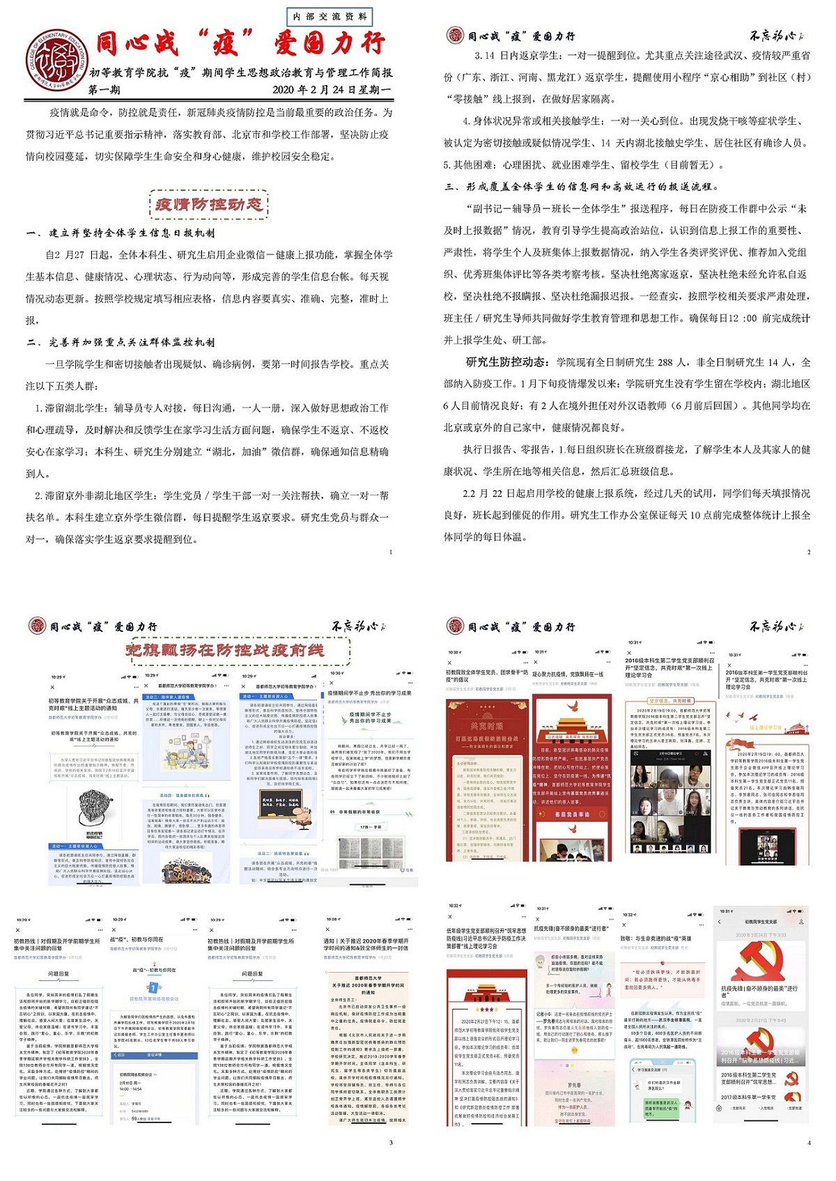 同心战疫 爱国力行——初等教育学院抗“疫”期间学生思想政治教育与管理工作简报第一期