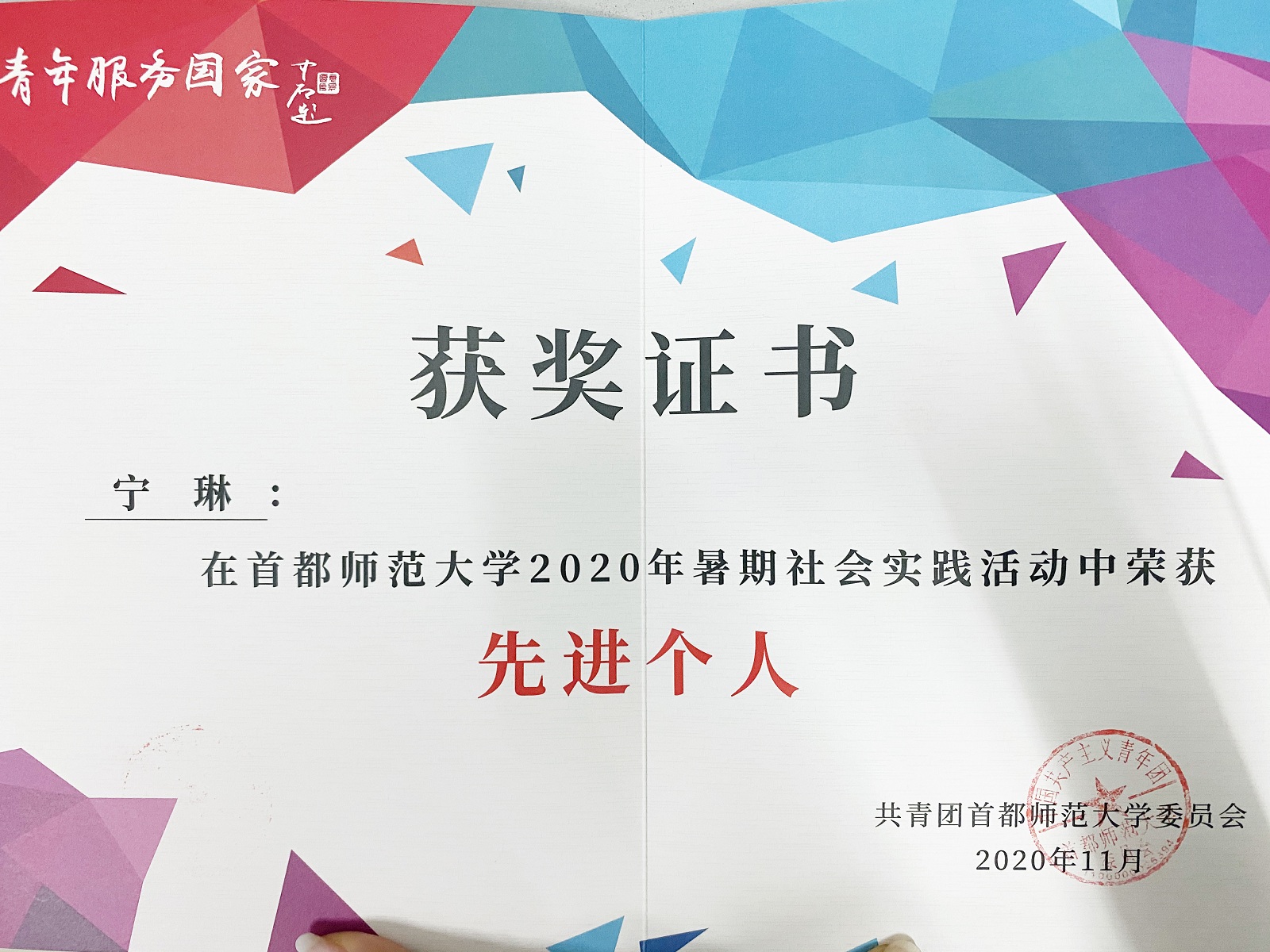日前,共青团北京市委员会对2020年“青年服务国家”首都大中专学生暑期社会实践活动进行了总结表彰。我院崔坤杰老师指导的“小手拉大手首(都)阜(平)云端课堂实践团”获得暑期社会实践优秀团队称号,我院指导教师崔坤杰以及本科生宁琳分别获得先进工作者以及先进个人的称号。