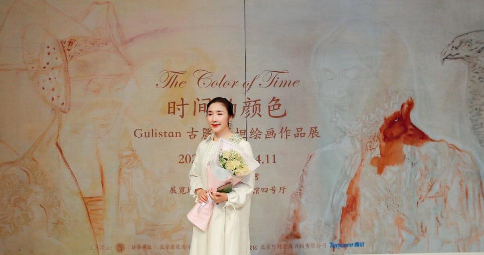 2021年4月2日下午,首都师范大学初等教育学院美术教师古丽斯坦“时间的颜色——Gulistan绘画作品展”在中国美术馆启幕。