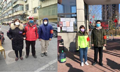 党员刘长利(左图右一)、王星(右图右一)参加社区疫情防控服务