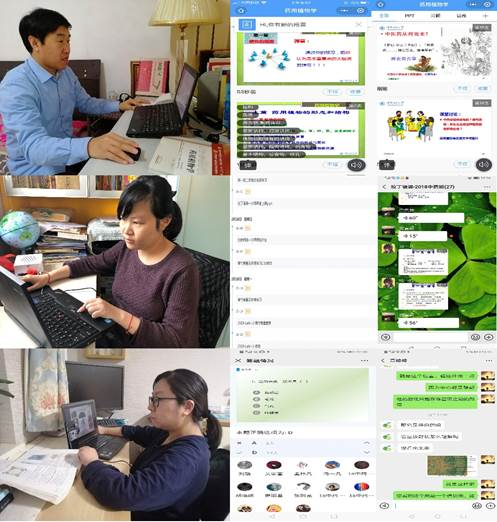 刘长利(左上)、巴寅颖(左中)、吴晓毅(左下)老师进行网上授课
