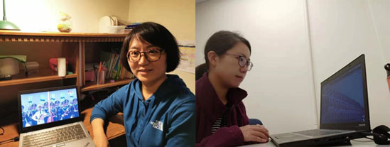 吴霞(左上)、王星(左下)老师网上指导研究生和本科实习生