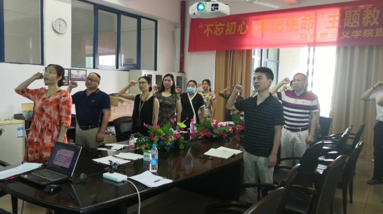 最后,在党的生日来临之际,马克思主义学院直属党支部为全体党员过了一次政治生日,全体党员在新转正党员吴红英同志带领下重温了入党誓词,使全体党员进一步端正思想态度,纯洁入党动机,在工作生活中发挥先锋模范作用,以实际行动践行党员的职责、为党旗增光添彩。