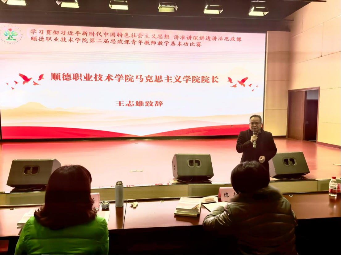 为深入学习贯彻习近平新时代中国特色社会主义思想,全面提升我校思政课教师讲准讲深讲透讲活思政课的教学能力和水平,12月23日上午,由学校教务处主办、马克思主义学院承办的第二届思政课青年教师教学基本功比赛在六号报告厅举行。广东工程职业技术学院党委副书记方燕教授、广州番禺职业技术学院马克思主义学院党支部书记曹群教授、佛山职业技术学院马克思主义学院院长陈艳教授受邀担任评委专家,我校马克思主义学院党政领导班子和全体教师参与了现场观摩交流。