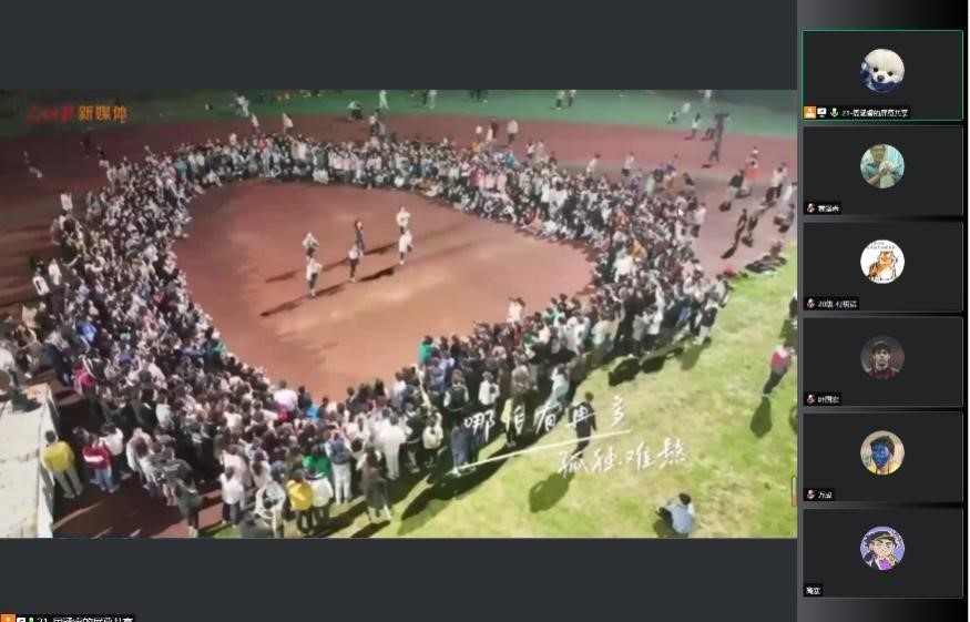视频播放结束后,会议以习总书记与大学生村官的一则故事引入党日活动“弘扬青年力量,承担青年责任”的主题。本次活动主持人周涵睿同志为大家介绍了冬奥会、抗疫斗争、红色影视作品中的“青年力量”。随后, 周涵睿同志为大家简要讲述了习总书记的七年知青岁月,总书记“年龄最小、地方最苦、时间最长”的插队生涯深深鼓舞了同学们发挥青年担当的士气。