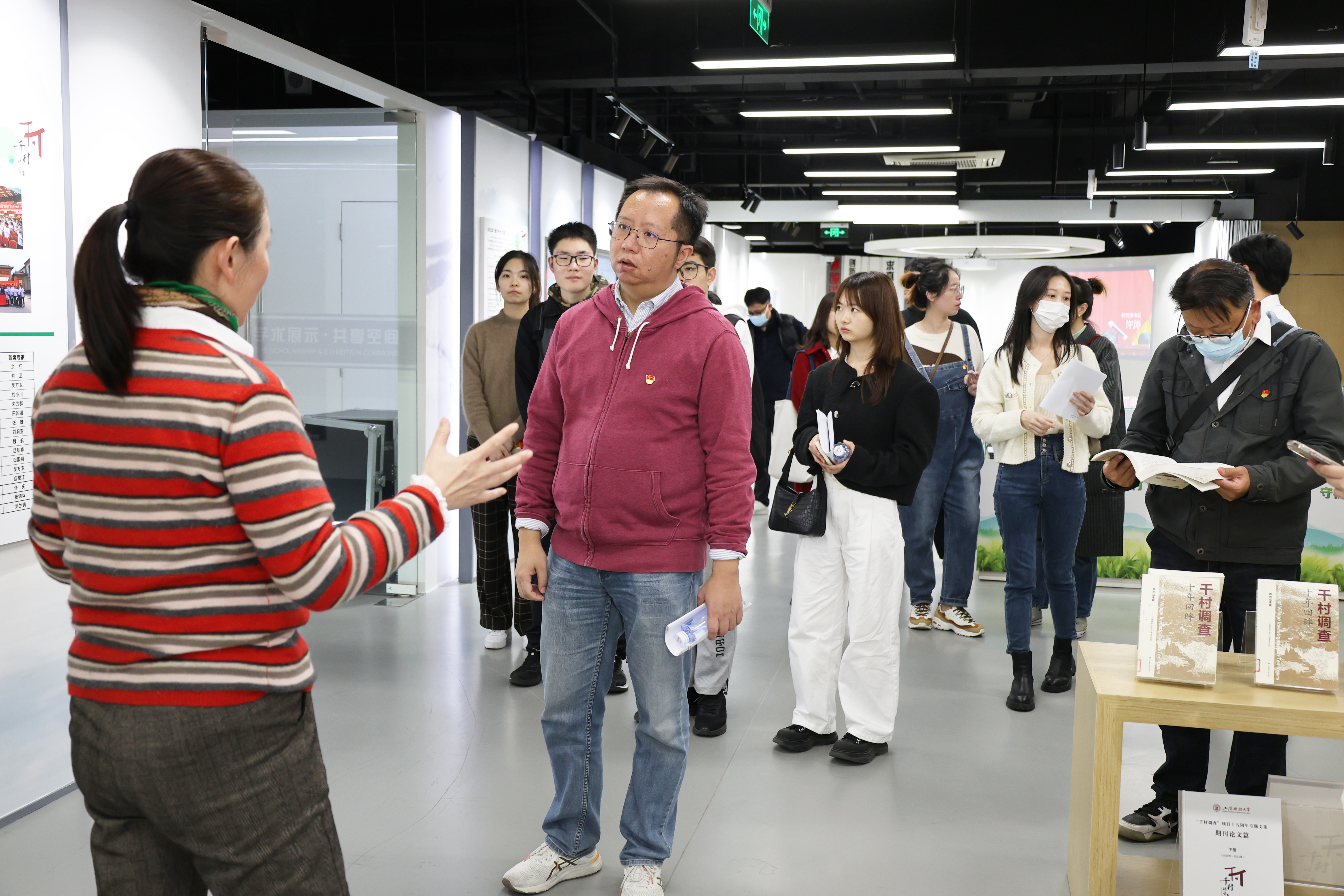 党建团建联建座谈结束后,大家一同前往图书馆参观了学术展示·共享空间。该空间通过实物、展板、视屏等多种方式,集中展示了学校的育人科研精品力作和学术信息资源。其中“千村调查”项目是学校加强国情教育、社会实践、劳动教育、科学研究、学科建设“五位一体”人才培养模式的品牌项目。参观后,双方在科研实践、社会调研等方面将搭建更加广泛的合作交流平台,让校企合作的“同心圆”越画越大。