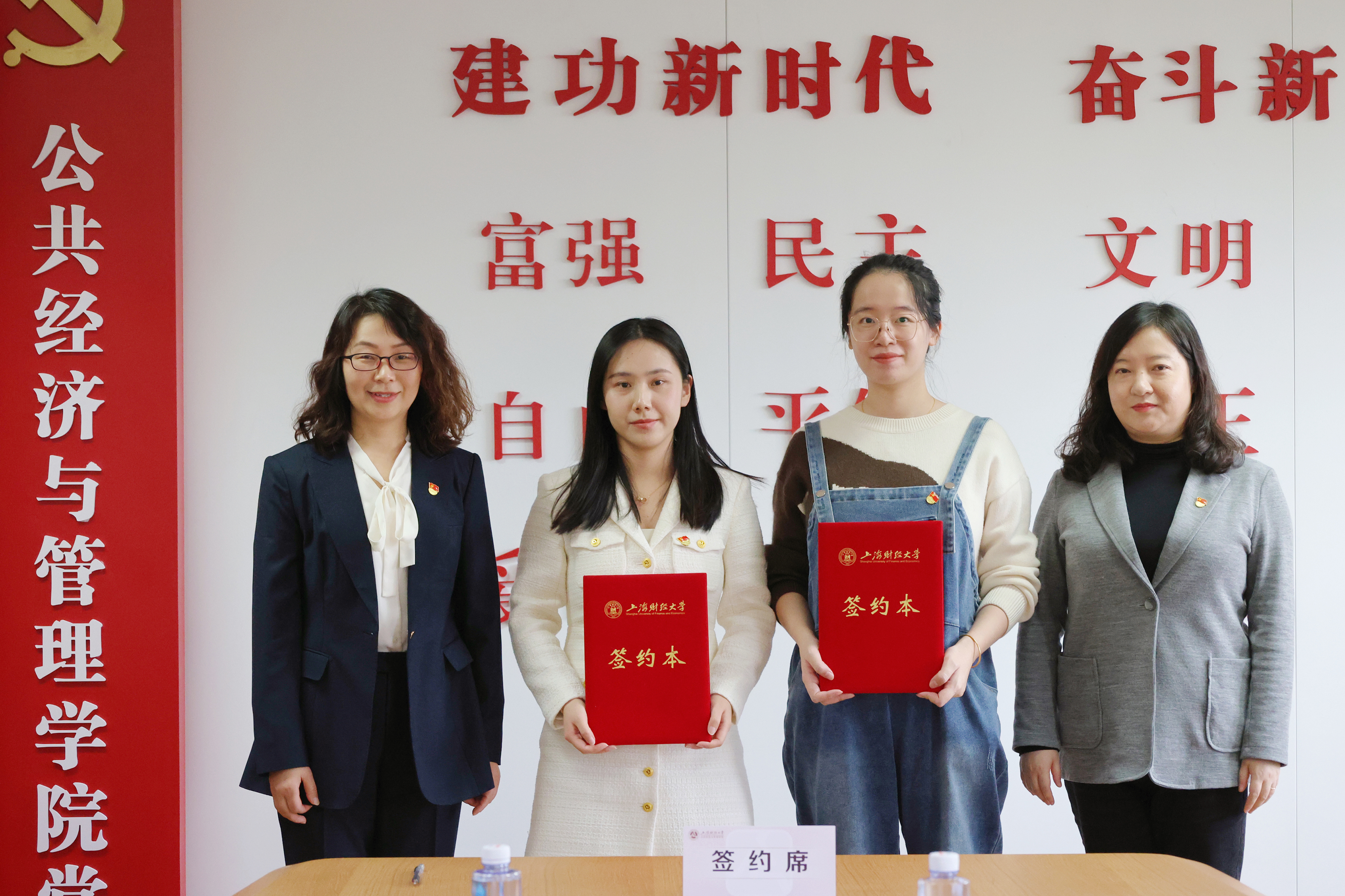 在周巧副书记与宋菁菁书记的见证下,凌婕书记与潘冰晶书记分别代表公共经济与管理学院团委与第一财经团委签署团建共建协议。