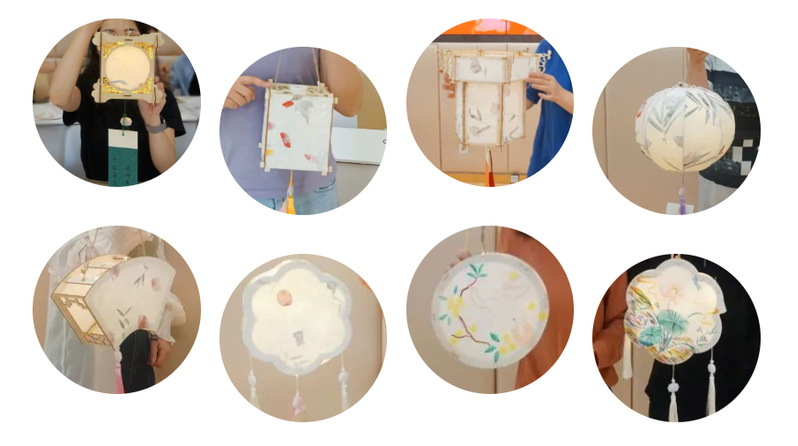 伴随着欢声笑语,古风花草灯笼制作活动拉开帷幕。大家围坐在一起,或仔细研究制作步骤、精心进行材料分类,细心进行组装拼接;或认真着色填涂花灯,执笔作画,勾勒出古朴雅致的独特花灯。经过耐心细致地拆分、拼接、粘贴、涂色等,一盏盏清新淡雅、造型别致的花草纸灯笼映入眼帘。