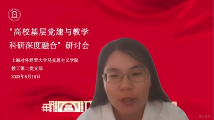 会议第一阶段由上海对外经贸大学马克思主义学院教工第二党支部书记李秀敏主持。