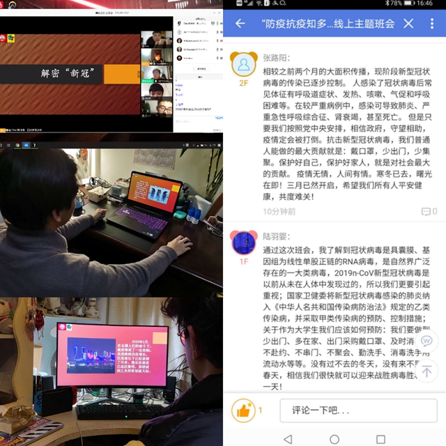 学生通过易班等网络平台开展疫情防控主题班会