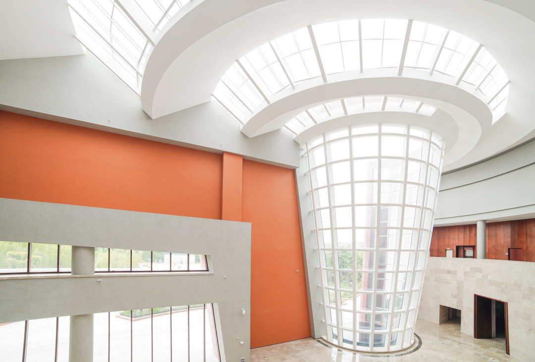 文博楼秉持“饮水思源”和“时空对话”的设计理念,将历史与现代元素交相辉映,深浅变化的地面弧形纹理呼应天蓬的涟漪形式,借以传达“天地通”和“上下同”的设计构思,碰撞出独具交大特色的经典与雅致,展现交大的过去、现在与未来。