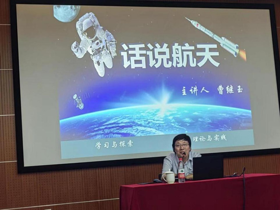 曹继玉作了题为“航天精神 航天故事”的专题讲座,生动翔实地向学员们讲解了中国航天事业取得的伟大成就及其成功的密码,使学员们了解了中国航天事业不平凡的艰苦发展发展历程和伟大航天精神,既让学员深受教育,也让学员倍感鼓舞。