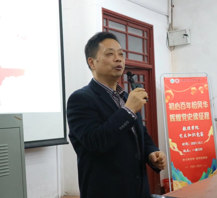 比赛结束,数理学院党委书记樊连生对本次比赛进行总结发言。樊书记向大家强调了学习党史的必要性,鼓励青年同志们积极参加党史学习的各类活动中去,开拓进取,奋发图强。