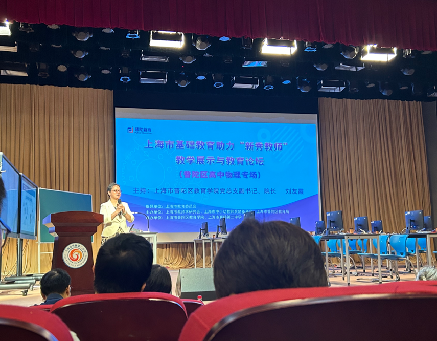 11月2日下午,我校数理学院2023级学科教学(物理)专业全体硕士研究生在杨建文副教授的带队下参加了由上海市教育委员会指导,上海市教师学研究会、上海市中小幼教师奖励基金会、上海市普陀区教育局主办,上海市普陀区教育学院、上海市曹杨第二中学承办的上海市基础教育助力“新秀教师”教学展示与教育论坛(普陀区高中物理专场)活动。本次活动由“活动致辞”、“教学展示”、“微报告论坛”、“专家点评”、“领导讲话”五个环节组成,内容丰富精彩,同学们受益匪浅。
