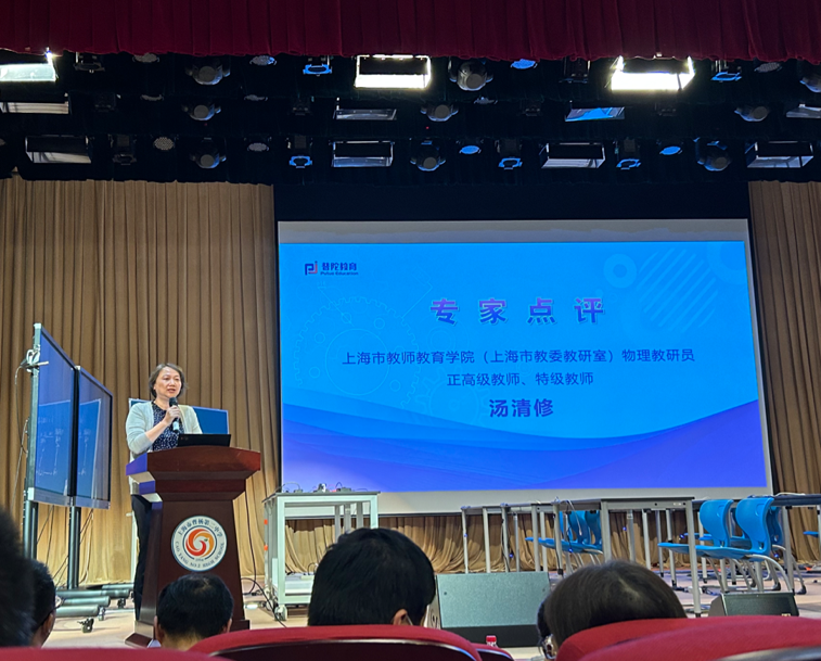 浙江省教育厅教研室高中物理教研员、正高级教师、特级教师梁旭对应俊老师的课堂教学进行了点评。应俊老师的课堂充分做到了心中有学生、心中有教,能针对科学探究的关键问题,先定性探究再定量探究,遵循学生学习的路径,重视学生思维和体验感,从物理学的价值角度将物理与生活相联系。上海市教师教育学院(上海市教委教研室)物理教研员、正高级教师、特级教师汤清修对李希凡老师的现场课堂教学进行了点评。李希凡老师的课堂讨论过程丰富,科学探究严谨,遵从学生思维。通过科学推理和科学论证培养学生的科学思维,落实物理核心素养。