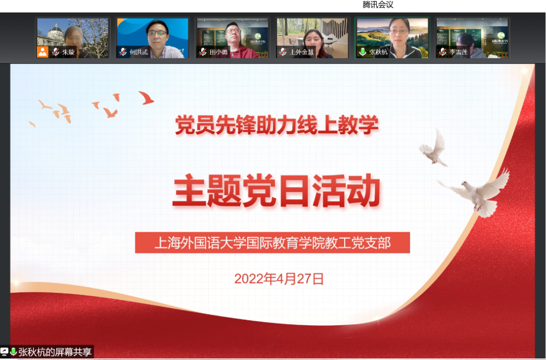 4月以来,上海实行全市封控,“停课不停学”,全校教学工作有条不紊地展开,离不开技术支持团队的各项保障工作。教工支部王萍和李锡阳老师,均为学校技术支持团队的核心成员。本支部于4月27日下午特邀请这两位党员教师代表在线分享工作感受、介绍教学微视频制作要领,开展“党员先锋助力线上教学”主题党日活动。