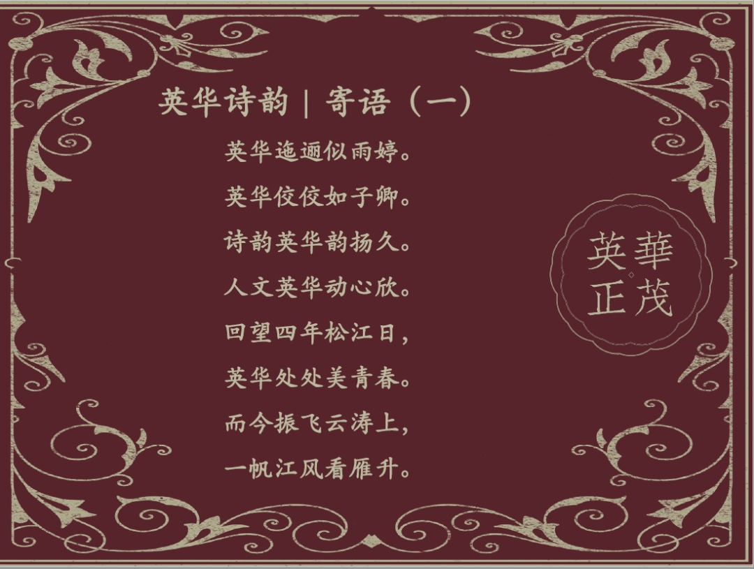 “学会选择是我们大学里的第一课,这堂课,我上了7年”。孙阔同学认为,英华时光让她对于选择的“厚度”、“高度”、“温度”有了更深刻的理解,学习书本也学习独立思考和自我判断,选择语言也选择担负时代使命和社会责任,为祖国讲好中国故事,选择志愿服务投入社会公益、在奉献中茁壮成长——这就是英华教会我们的那些事。