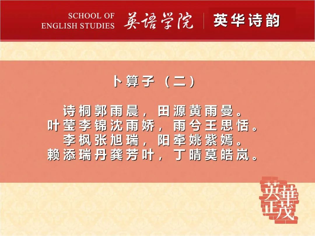 上外副校长、学院前任院长查明建教授向全体毕业生表达了英华师者的祝福,并延续数年传统,把同学们的姓名嵌入诗行深情朗诵:日后山高水长,让老师最后一次在校园里呼唤你的名字吧!