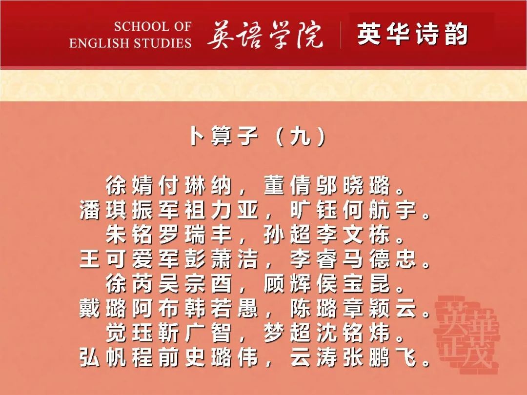 最后,查老师将每一位研究生同学的名字写成诗行,在温润激昂的吟诵中再次祝愿同学们迈步从头越、开启新征程。