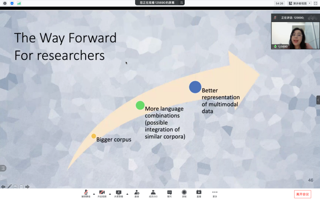 关于口译数据挖掘和未来发展,潘博士分别从研究者、软件开发者和语料库建设者三个方向进行了展望: