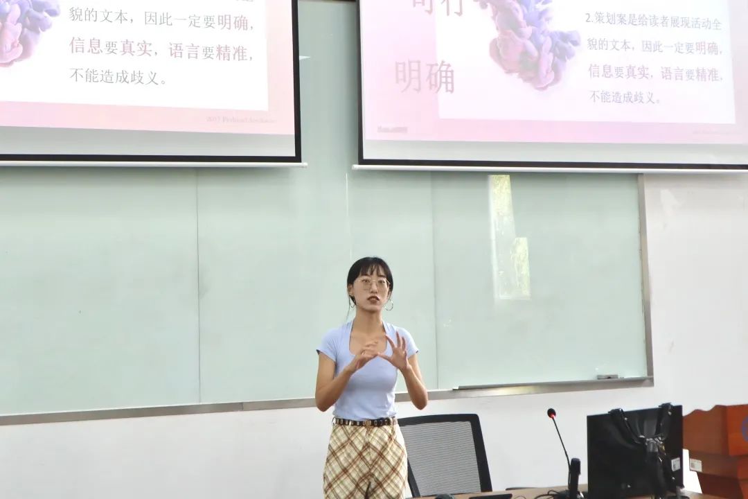 最后,张婕雅同学总结道:文字都是有温度、有感情的。写文案,用心,比技巧更重要。她希望大家在写下每段话的时候,都是带着鲜活的、跳动的心去思考、去感悟、去完成,并祝愿大家在英语学院团委、学生会度过充实而快乐的时光!