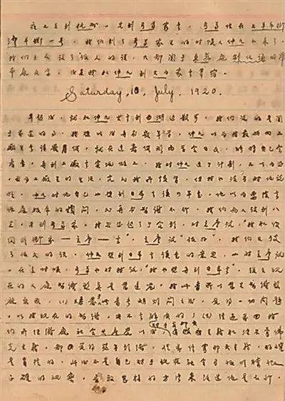 During the night, Wangdao asked me to send his translation of The Communist Manifesto to Duxiu's house tomorrow. The original text of the Manifesto is in German, but we cannot find it now. So, we have to rely on the English, Russian and Japanese translations to proofread it. (June 27, 1920)