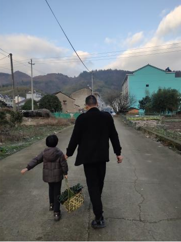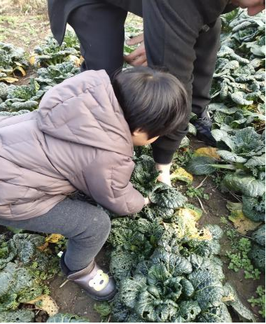 一天下来,在祖孙的共同劳作下,竹篮早已被青菜填满。孩子拎着满满一篮青菜,和家人踏上回家的路。满载青菜的竹篮饱含着温情与汗水。寒冬腊月,又有多少能比祖孙一起在田间劳作更幸福温馨呢?(The harvest today witnesses a day of joy and sweat. What else can be happier than three generations working together in the field in the deep middle winter? )