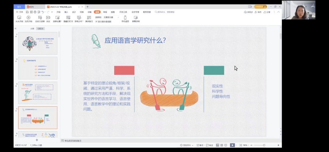 2022年4月22日上午,上海外国语大学英语学院教授、博士生导师李茨婷老师为大家带来“英华人文系列讲座”第159讲“应用语言学学术研究训练”。该讲座为正在进行应用语言学研究和对应用语言学感兴趣的同学提供了学科素养提升的建议和研究方法的指导,得到了校内外师生的一致好评。