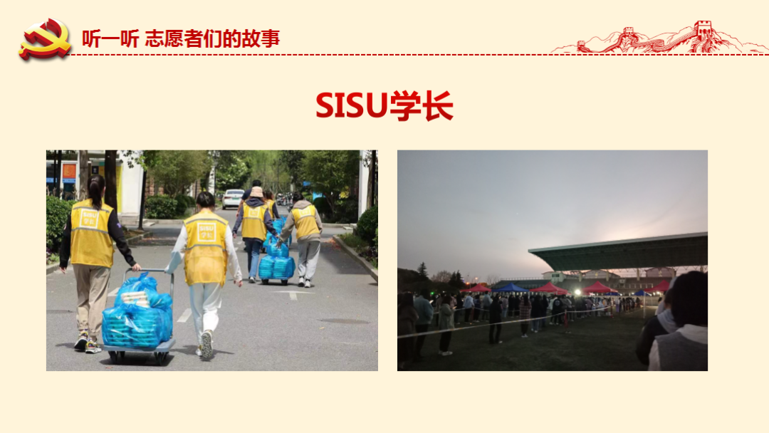 “SISU师者”“SISU学长”“志愿者”“逆行者”……这些忙碌奔波的身影出现在校园各个角落,他们身体力行、默默奉献,以高度的责任感,挺身而出,践行青年使命,共守一方平安。