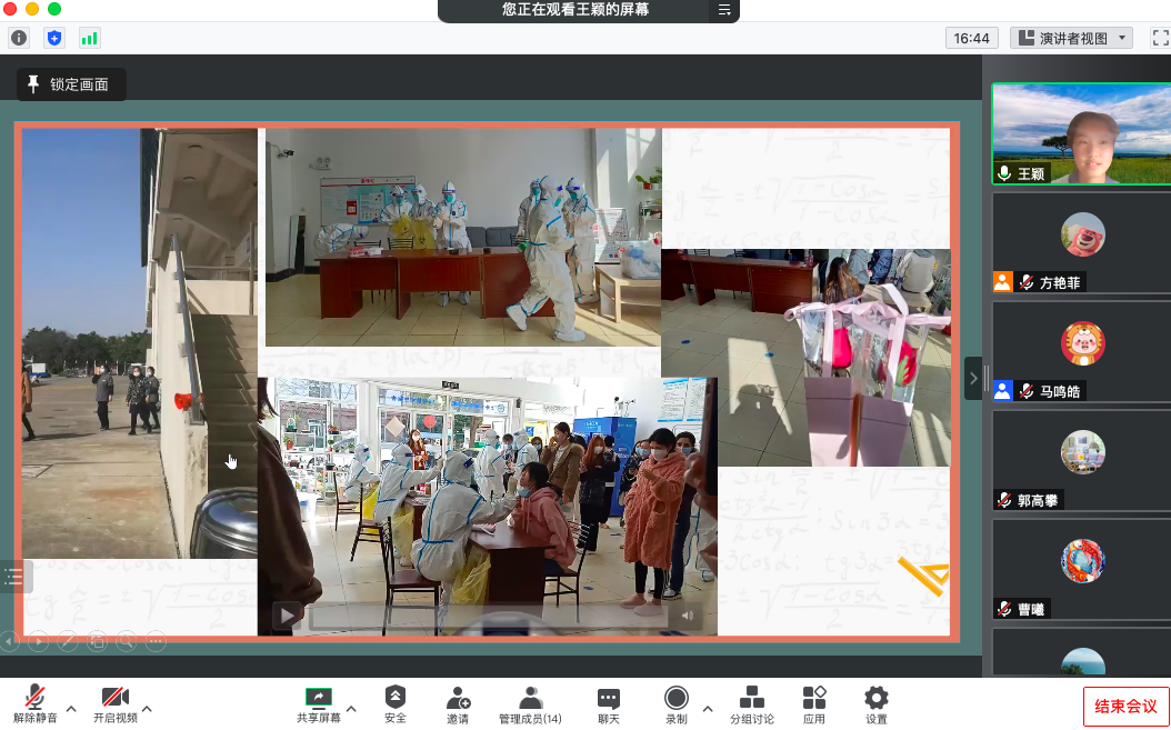 在防疫主题热词英译环节,马鸣皓同学分析了当前上海严峻的疫情现状,支部成员们再一次认识到只有每一位身在上海的市民形成强大的共识,方能共克时艰,最终取得这场战疫的胜利。随后,大家讨论了与疫情相关的热词英译方案,如:“外防输入、内防反弹”(guarding against imported cases and preventing a resurgence of the outbreak at home)、“控制灵魂对自由的向往”(Control your soul’s desire for freedom)等。同学们兴趣盎然,争先回答,在翻译过程中再次加深了对抗疫精神的理解。此外,支部党员以Vlog的形式分享了同学们在疫情期间参与志愿活动的工作瞬间,大家以实际行动诠释了党员的责任与义务。
