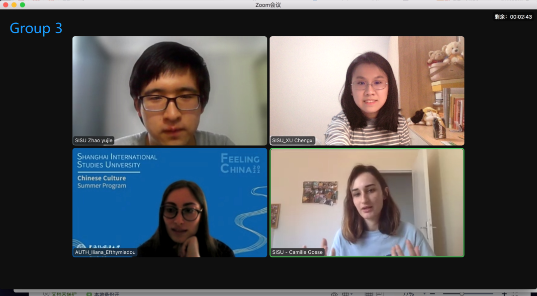 在开幕环节,全体同学在线观看了视频,领略到上外“向上向外”、包容开放的校园氛围及往年中国文化暑期项目的精彩瞬间。之后,同学们通过有趣的破冰游戏及简短而生动的自我介绍增进了彼此之间的互动与了解。尽管来自14个不同的国家,所学专业从哲学、法律、教育、语言学到国际政治、经济管理、媒体、物理学,同学们都表达了对中国文化的浓厚兴趣以及对本次项目的热情期待。