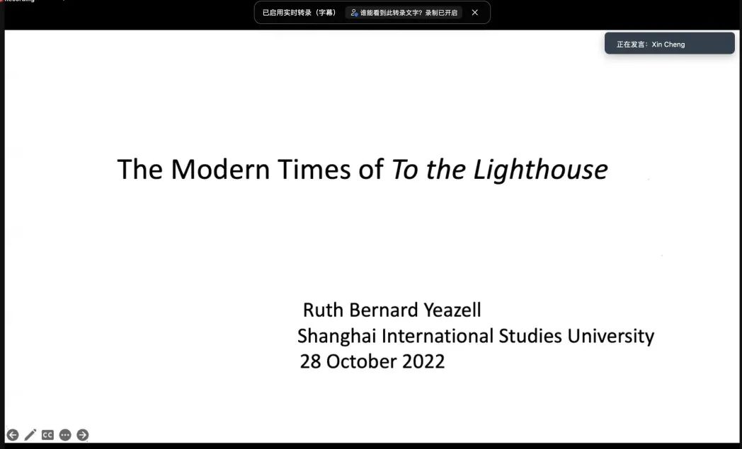 2022年10月28日,上外英语学院有幸邀请到耶鲁大学露丝·伯纳德·叶泽尔(Ruth Bernard Yeazell)教授为我们带来以“The Modern Times of To the Lighthouse”为主题的讲座,带领大家一起走近弗吉尼亚·伍尔夫(Virginia Woolf)《到灯塔去》(To the Lighthouse)的时代,并且尝试从不同的角度回答这样一个问题:将本书视为现代主义小说意味着什么?本次讲座由我院程心老师主持,共有三百名校内外师生参与其中,收获热烈反响。