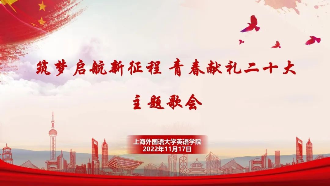 为庆祝党的二十大胜利召开,深入学习贯彻习近平新时代中国特色社会主义思想、学习贯彻党的二十大精神,从党的百年奋斗历程和新时代伟大变革中汲取力量,展现青年爱党爱国、积极向上的精神风貌,上海外国语大学英语学院举办“筑梦启航新征程 青春献礼二十大”主题歌会活动。