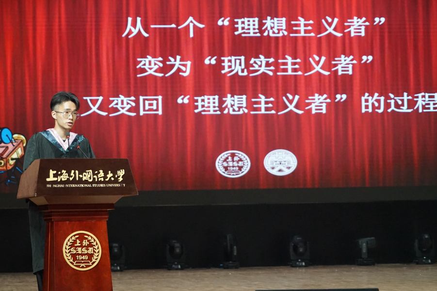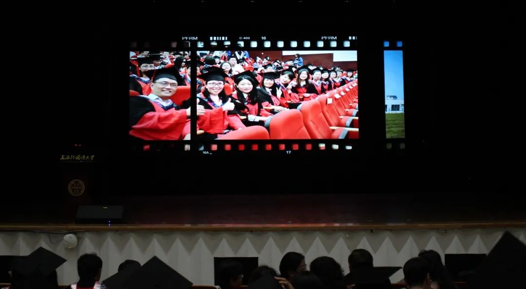 随着开场视频《致谢》点亮大屏幕,同学们的思绪一下被拉回毕业论文写作定稿的时刻。回首过往点滴,感谢当年怀揣热血与梦想选择踏入上外校园,并在这里走过迷茫、奋斗收获的自己,感谢具有包容气度的校园和饱含人文情怀的学院,感谢倾囊相授的老师和风雨共担的同学,共同铸就多彩难忘的英华时光。