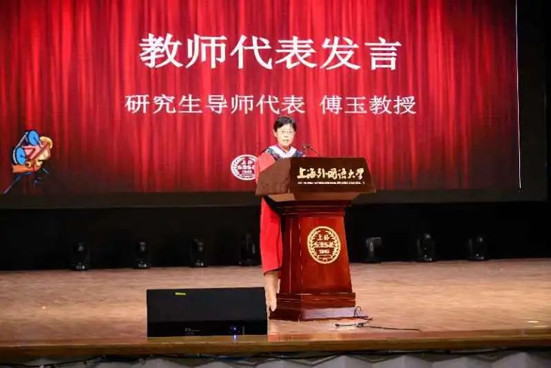 研究生导师代表傅玉教授为同学们圆满完成学业、开启新的人生篇章送上最诚挚的祝贺,也为同学们的未来发展提出了宝贵的建议。“奋楫扬帆风正劲,砥砺前行正当时”,她希望同学们能够心怀祖国,志存高远,把小我融入大我,为国家的发展和社会的进步贡献力量;追求理想,真诚做事,用热爱攻克困难,以初心战胜挫折;更要乐观生活,关爱他人,用向上向善的力量,积极面对生活的挑战。