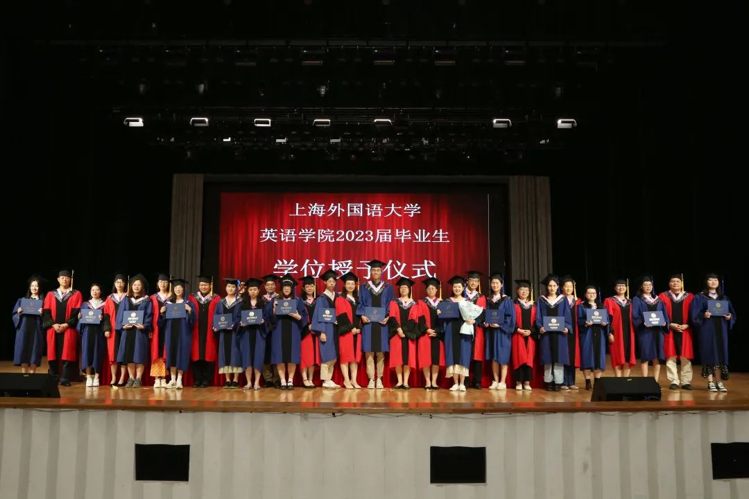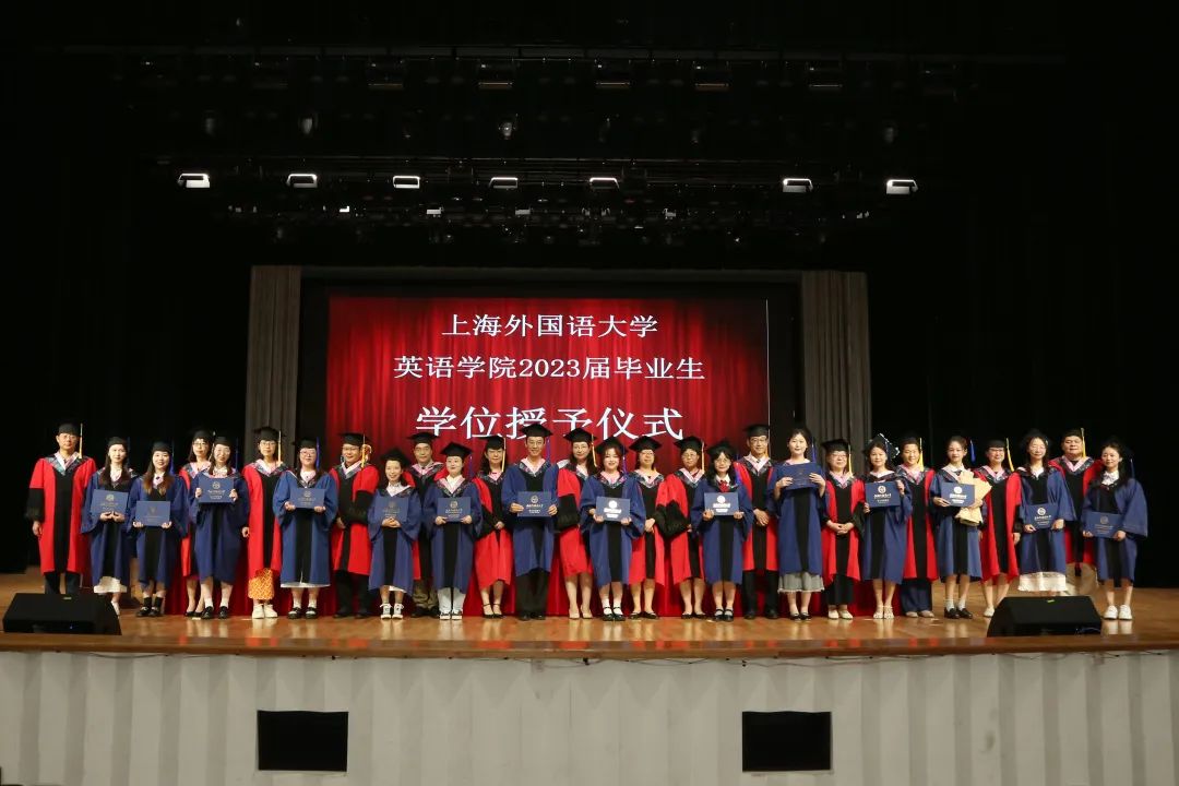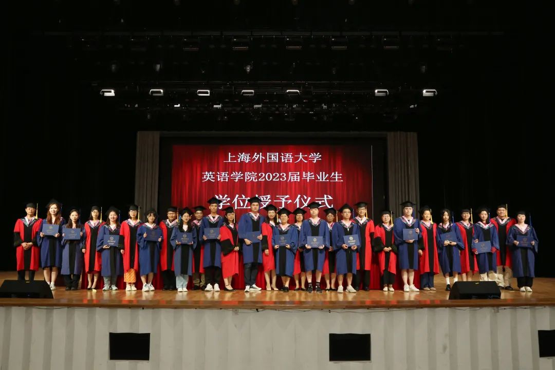 2023年6月15日下午,上海外国语大学英语学院“英华留声 光影定格”2023届学生毕业典礼暨学位授予仪式于松江校区教育会堂举行。学院班子成员、专业教师代表、辅导员、行政教师代表、部分2020届、2022届校友及亲友代表出席典礼,为即将开启新征程的本硕博毕业生送上祝福,共同见证英华风采,定格美好记忆。本次典礼由英语学院2019级本科毕业生王去非主持。