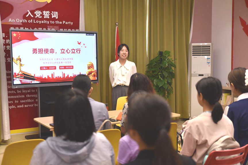 全国“双百支部”华东师范大学心理与认知科学学院学术型硕士研究生第一党支部书记王云汐同学以立心、立行、致远为关键词,分享了支部创建全国“双百支部”的工作经验。支部通过组织专家报告、史料展览、音乐党课等丰富多样的活动持之以恒开展理想信念教育和思想政治建设,疫情期间支部发挥专业优势,以创作心理科普漫画、服务援助热线等、开展心理学读书会、教育筑梦行动、音悦之声实践活动等形式,筑牢疫情防控“心”防线,支部及成员获上海市抗击新冠肺炎疫情先进集体、先进基层党组织、各类竞赛奖项等荣誉,充分体现了支部青年的责任担当,体现了党支部的战斗堡垒作用。
