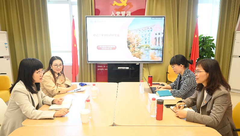 | 三亚学院来我院调研交流 - 上海外国语大学英语学院三全育人综合改革试点院(系) - 思政网育人号 - 全国高校思想政治工作网