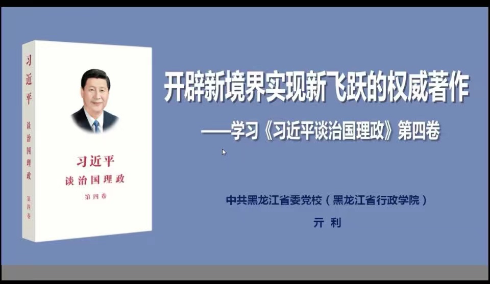 中共黑龙江省委党校(省行政学院)名师工作室首席专家亓利教授以《开辟新境界实现新飞跃的权威著作——学习<习近平谈治国理政>第四卷》为题通过腾讯会议平台在线作专题学习辅导。