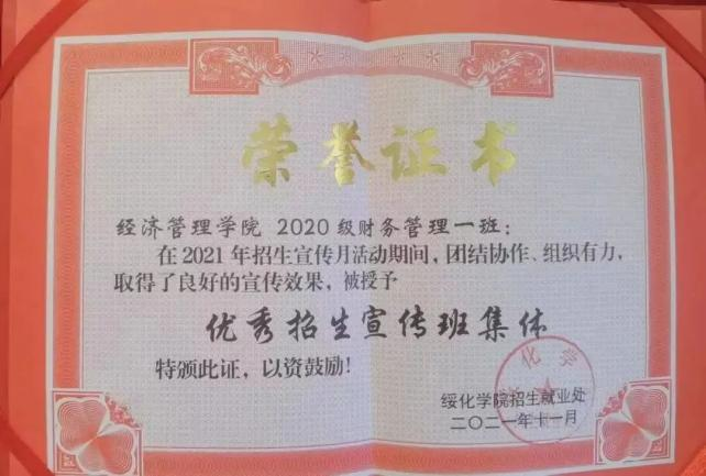 2020级财务管理一班团支部组织凝聚力强,曾获校“优秀宣传班集体,支部青年多次荣获国家级、校级奖学金、大学生道德模范,五四红旗团干部等荣誉称号。